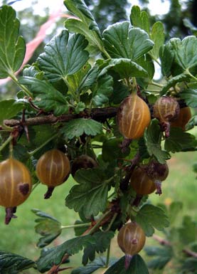 Stachelige, sommergrüne, bis 2 m hohe Sträucher. Behaarte Beeren, lecker für Kuchen und Süßspeisen, Reife im Juli.