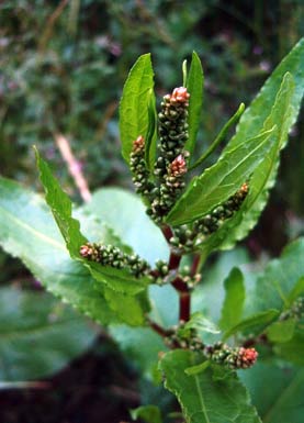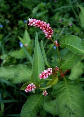 Am Feldrand mit grün- weißen, weiß-rosa oder kräftig rosa Blütenähren und oft, aber nicht immer schokoladen-brauner pfeilförmiger Zeichnung auf den Blättern Siehe unterstes Bild.