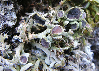 Schneepegelflechte Parmeliopsis, wahrscheinlich hyperopta ?