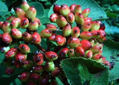 Wild oder im Garten kultiviert Liebt Sonne und Wärme Blütezeit Mai & Juni Blätter: Oberseite leicht runzelig, Unterseite graufilzig behaart Strauch wird mehrere Meter hoch Blüten riechen arg streng