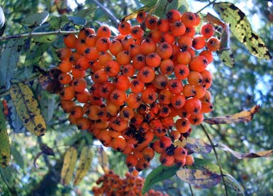 Blütenbälle im Mai und reife Beeren ab Juli. Oft auch verwildert.