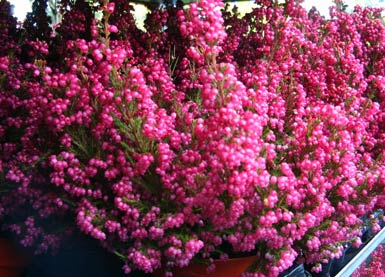 Herbst- und Winterblüher in allen Weiß-, Lila- und Rosatönen, einfach, oder wie unten, als Glockenheide.