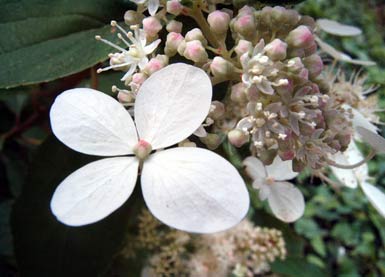 Mit raffinierten großen äußeren Scheinblüten, die Insekten anlocken sollen. Fruchtbar sind aber nur die kleinen Blütchen innen