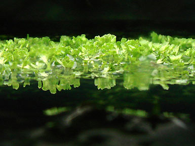 Unteres Bild links: So sieht ein dickes, dichtes Polster unter Wasser aus. Beneath left: Dense cushion, seen from under water.
