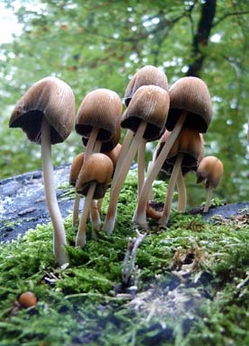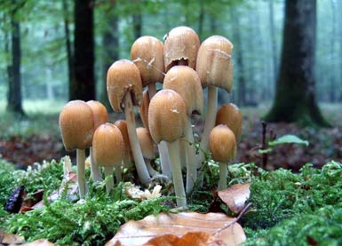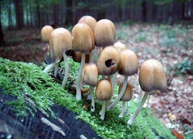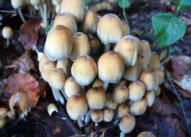 Häufiger Pilz, büscheliges Auftreten, Hütchen wie