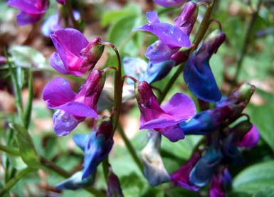 Mai-Blüher, der oft in größeren Gruppen auftritt und den ganzen Waldboden blaulila schillern lässt. Verwandt mit Wicken und Klee, wird ca. 25 cm hoch.