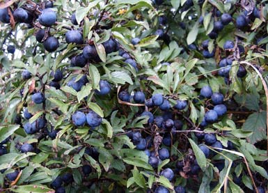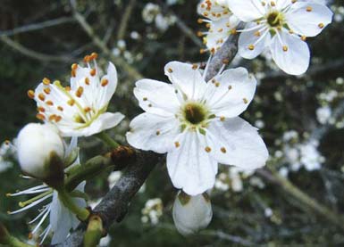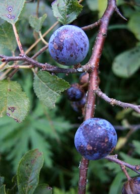 Blüht ab April, Blüten meist deutlich vor den Blättern. Die Schlehenfrüchte entwickeln sich ab August. Die Schlehen selbst schmecken sehr herb und haben eine zähe Schale. Aus ihnen werden aber Saft, Liköre und Schnäpse hergestellt.