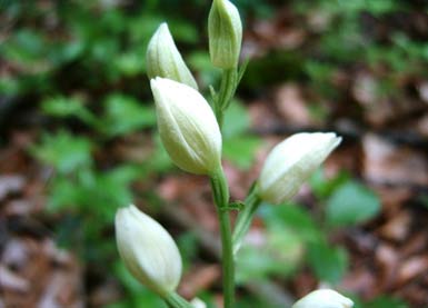 Auch hier können Sie die bei Orchideen typischen gedrehten Blütenstiele gut erkennen.