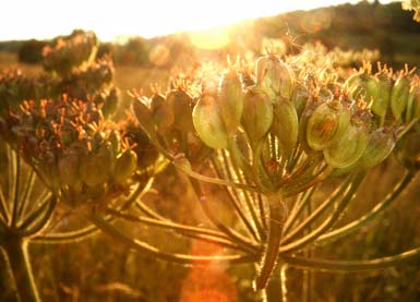 Haarige Stängel, auffällige Hüllblätter, große weiße Dolden im Juni