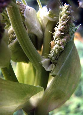 Auffällig die fast fleischig wirkenden Hüllen um Blätter