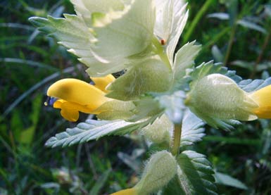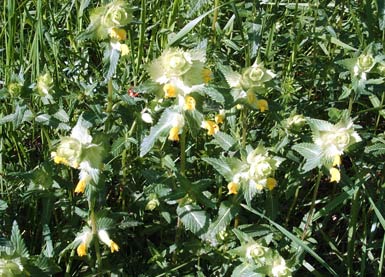 eindringt und ihnen Wasser entzieht. Selbst hat der Klappertopf nur ein verküm-
