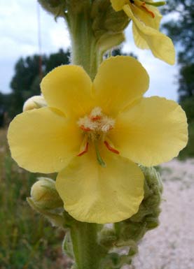 Große Pflanze, bis ordentlich über 2 m hoch Wenige große Blüten, auch weiß behaart an Knospen, Stängeln und Blättern Blüht auch im Juni