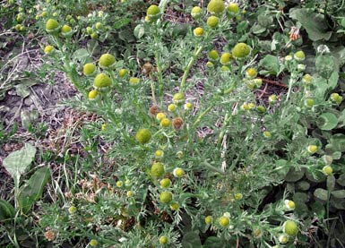 pineapple weed Matricaria matricarioides oder discoidea Korbblütler Asteraceae Wächst auch dort, wo es steinig oder sandig und trocken ist Auf Wegen und am Wegesrand zu finden Bis ca. 25 cm hoch Nur Röhren-, keine Zungenblüten Blütezeit im Sommer ab etwa Juni Enthält, wie die echte Kamille, auch jede Menge ätherischer Öle, besitzt aber die ganz deren Heilkraft |
