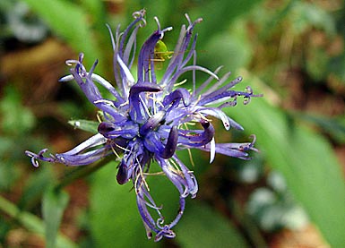 round-headed rampion Phyteuma orbiculare Glockenblumen- gewächse Campanulaceae Blütezeit Frühsommer bis ungefähr Juli oder August Bis ca. 40 cm hoch Mag kalkhaltige Böden und magere Wiesen. In Österreich noch verbreitet, in Deutsch- land seltener Fundort nahe Burg- hausen / österreichische Grenze |