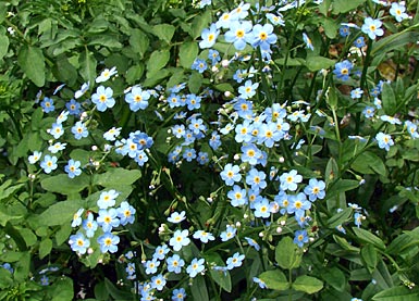 water forget-me-not Myosotis palustris Borretschgewächse Boraginaceae Am Rande von stehenden und fließenden Gewässern Auch beliebt zur Bepflanzung von Gartenteichen Bis ca. 50 cm hoch Blüht ab Mai bis ca. Juli und im Spätsommer manchmal ein 2. Mal Der ausnahmsweise aus dem Griechischen stammende Name Myosotis ist zusammengesetzt und bedeutet Mauseohr! Was sich auf die Form der Blättchen bezieht. |