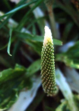 Großer Wegerich broadleaf plantain Plantago major Wegerichgewächse Plantaginaceae Blütezeit ab Juni über den ganzen Sommer Wege, Pflasterfugen, Wiesenränder, Ufer, Viehweiden, Geröll, Schotter Am liebsten auf verdichteten Böden, deshalb oft an stark betretenen oder befahrenen Stellen Heilpflanze zur Verwendung mit Umschlägen aus den Blättern: Bei allen Entzün- dungen, Verbrennungen und Ausschägen der Haut, hauptsächlich juckreiz- mindernd und entzündungshemmend |