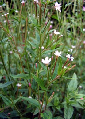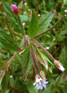 willow herb Epilobium parviflorum Nachtkerzengewächse Onagraceae Blütezeit Juli & August Bis ca. 95 cm hoch Braucht feuchten Standort, Wald, Wiesen, Gräben & Ufer Volksheilmittel: als Tee gegen Blasenleiden ein- gesetzt, der wissenschaft- liche Beweis für die Wirk- samkeit fehlt allerdings. Der vierkantige Teil unterhalb der Blüte ist kein Stiel, sondern der lang gestreck- te Fruchtknoten, der bei Reife, wie man unten sehen kann, viele haarige Flugsamen entlässt. |