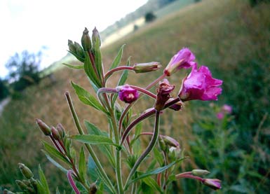 Weidenröschen great willow herb Epilobium hirsutum Nachtkerzengewächse Onagraceae Blütezeit Juli & August Bis ca. 1,50 m hoch Nasse, nährstoffreiche Böden; an Ufern, in Gräben, auf sumpfigen Wiesen Wie alle Weidenröschen Fortpflanzung mit behaarten Flugsamen, die vom Wind verbreitet werden. So weit ich weiß keine Heilpflanze wie andere Weidenröschenarten |