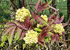 Sambucus racemosa Großstrauch am Wiesenrand |