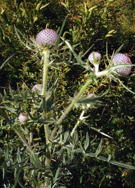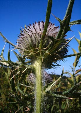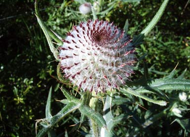 Ganz bizarres Gerät mit wunderbar regelmäßigen, wollig behaarten Knospen. Die eigentlichen Blüten sind anderen lila Disteln sehr ähnlich. Blüte im Juli/August