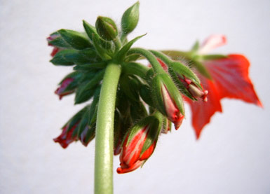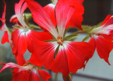 Gezackte, weiche Blätter, leicht behaart. Sparriger Wuchs, wird von unten leicht kahl, kräftig rote, zipfelige Blüten mit weißer Mitte Blütenblätter-Rückseite mit weißen Nerven So, jetzt steht endlich auch der Name der Sorte fest: Es ist eine Fireworks Cherry-White!